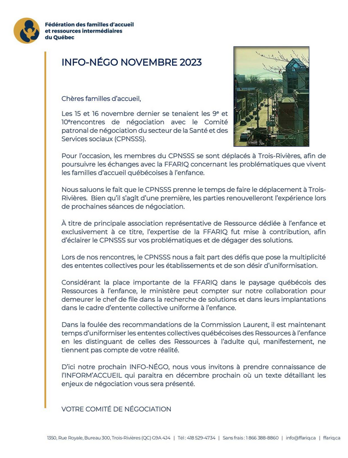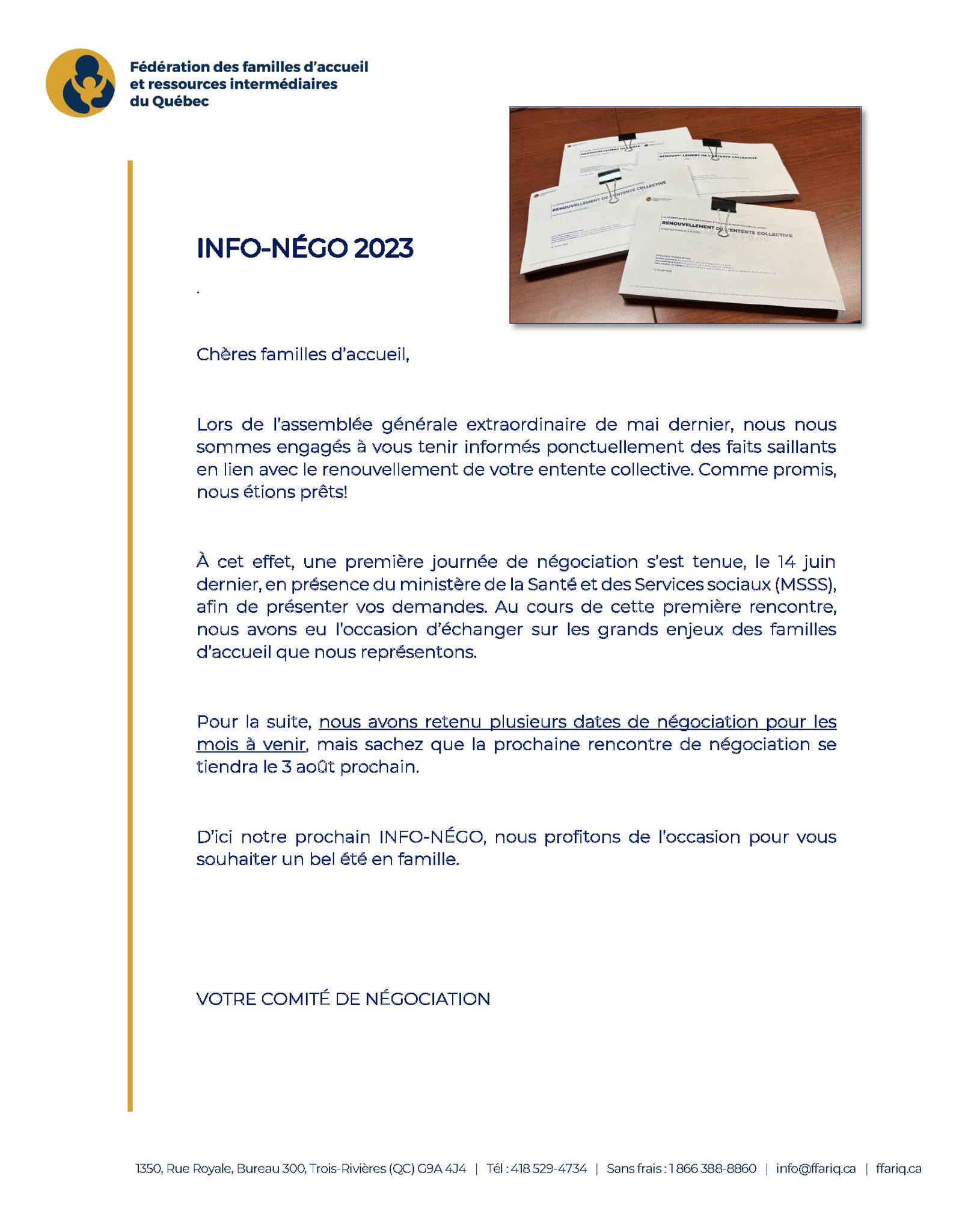 La majorité d’entre vous reçoit par courriel notre bulletin Info négo. Nous les rendons disponibles ici afin de nous assurer que tous puissent avoir accès à cette information primordiale.